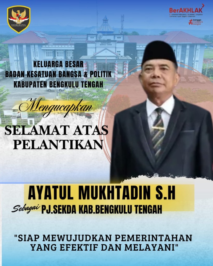 Selamat kepada Bapak Ayatul Mukhtadin atas Pelantikannya Sebagai PJ.Sekda Bengkulu Tengah