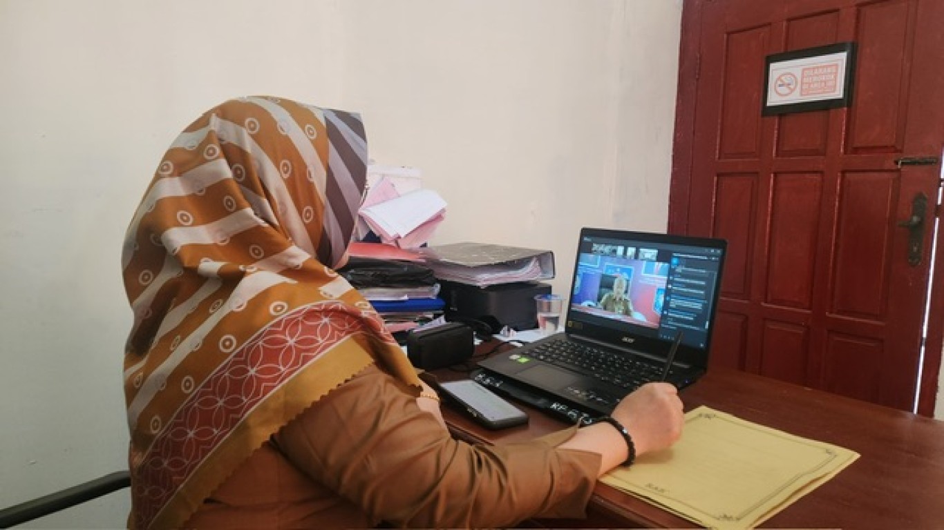 Kepala Bidang IDWASBANG ; Liana Hartini, ST beserta Dua orang Stafnya mengikuti Zoom Meeting tersebut. Zoom meeting di buka secara Virtual oleh; Dr.Drs.Bahtiar, M.Si selaku Dirjen Politik dan Pemerintahan Umum Kemendagri. 4 (Empat )orang Moderator turut Mengisi Materi Rakor.