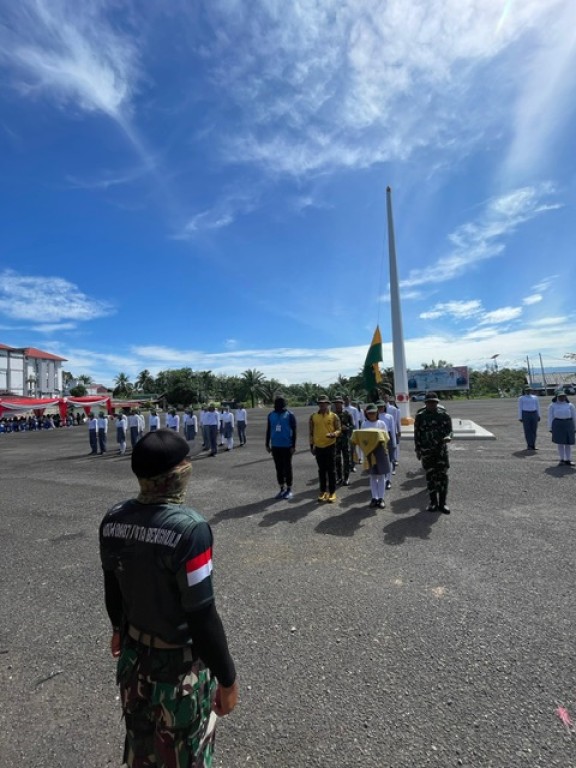Kesbangpol_benteng, Menjelang peringatan Hari Ulang Tahun ke-80 Kemerdekaan Republik Indonesia, Pasukan Pengibar Bendera Pusaka (Paskibraka) Kabupaten Bengkulu Tengah menggelar latihan gabungan bersama Pasukan 45. Latihan yang dilaksanakan H-3 ini berlangsung di Lapangan Gunung Bungkuk dan menjadi momen penting dalam memantapkan kesiapan pasukan sebelum pelaksanaan upacara pada 17 Agustus mendatang.